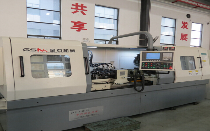 該機(jī)床具備工件、鉆桿雙旋轉(zhuǎn),加工大批量中小型零件同軸心深孔的能力。同時(shí)還具備鉆桿旋轉(zhuǎn),工件固定或通過工裝調(diào)整孔徑角度并固定的加工方式。