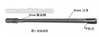 槍鉆因最早用于兵器工業(yè)加工槍管而得名,主要用來(lái)加工φ2~φ20mm小徑深孔,是目前深孔鉆削中的一種優(yōu)質(zhì)高效工具。美國(guó)鉆科公司(DRILLMASTERS)公司作為世界上最主要的孔加工旋轉(zhuǎn)切削刀具供應(yīng)商之一,在槍鉆的研發(fā)和制造方面具有多年的成功經(jīng)驗(yàn),其所研發(fā)的刀具具有切削效率高、加工精度好和刀具壽命長(zhǎng)等特點(diǎn),已廣泛應(yīng)用于汽車工業(yè)、航天工業(yè)、結(jié)構(gòu)建筑工業(yè)、醫(yī)療器材工業(yè)、模具/刀具/冶金工業(yè)及油壓、空壓工業(yè)等制造業(yè)領(lǐng)域。