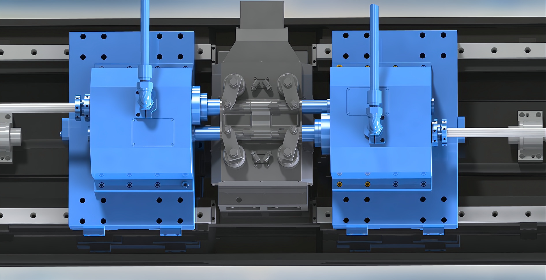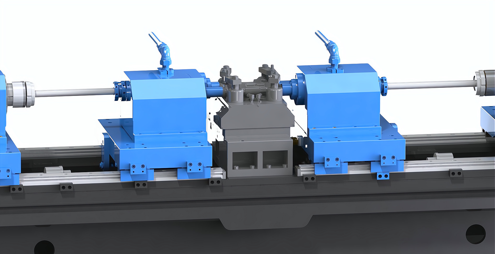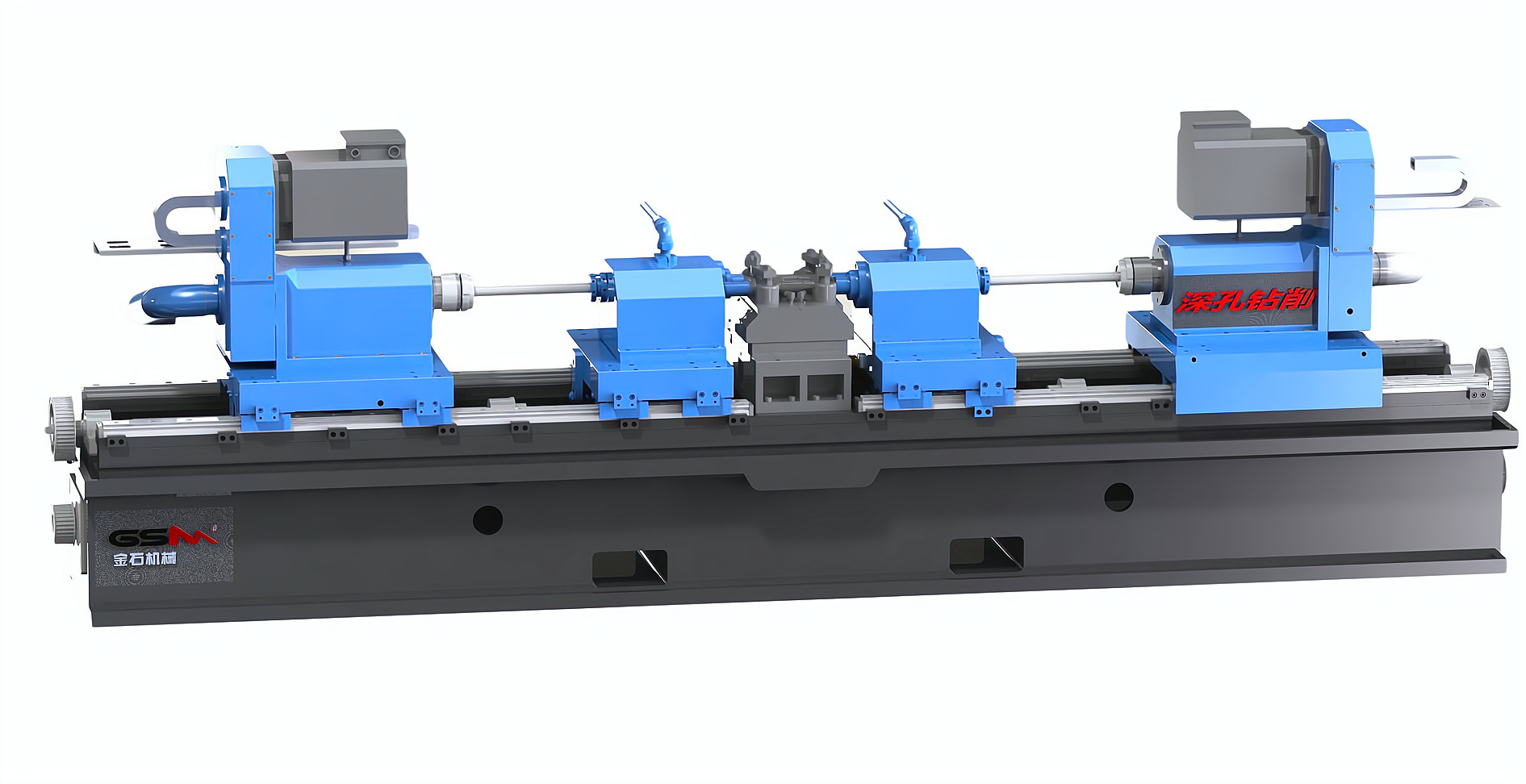 簡要說明:機床采用臥式布局,兩支鉆桿對向錯位設計,中心距94mm(可定制),刀具采用BTA單管鉆。工裝放置在機床的中間位置,液壓旋轉壓板自動夾緊。一次裝夾,可同時對向鉆削加工完成履帶板上的2-φ32mm深孔。加工效率極高。冷卻系統(tǒng)放置在主機后面,平行放置,結構緊湊,占地面積??;
