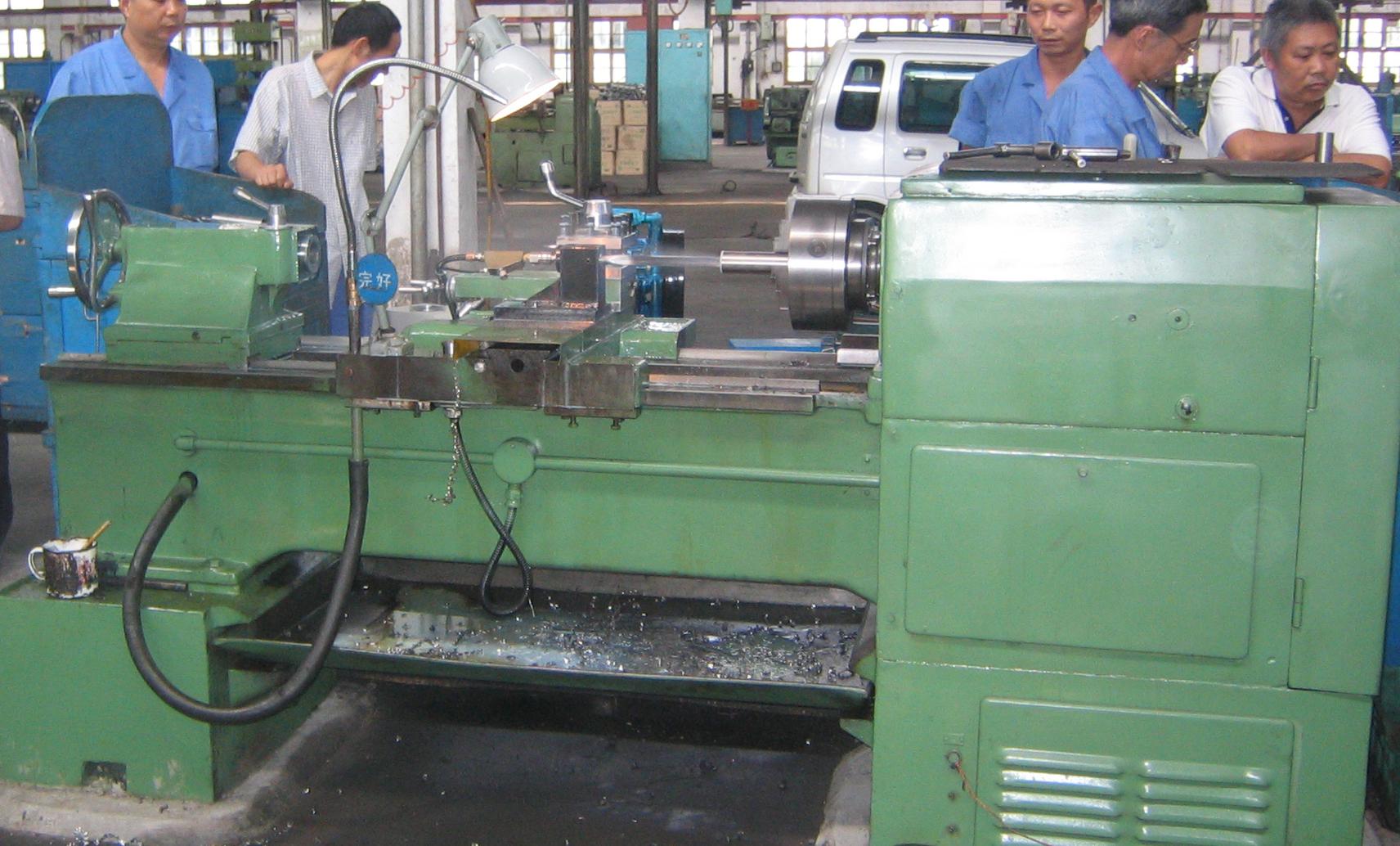 開(kāi)啟機(jī)床,待機(jī)床主軸旋轉(zhuǎn)穩(wěn)定后,打開(kāi)自動(dòng)走刀進(jìn)入切削狀態(tài),鐵屑連續(xù)飛出。
